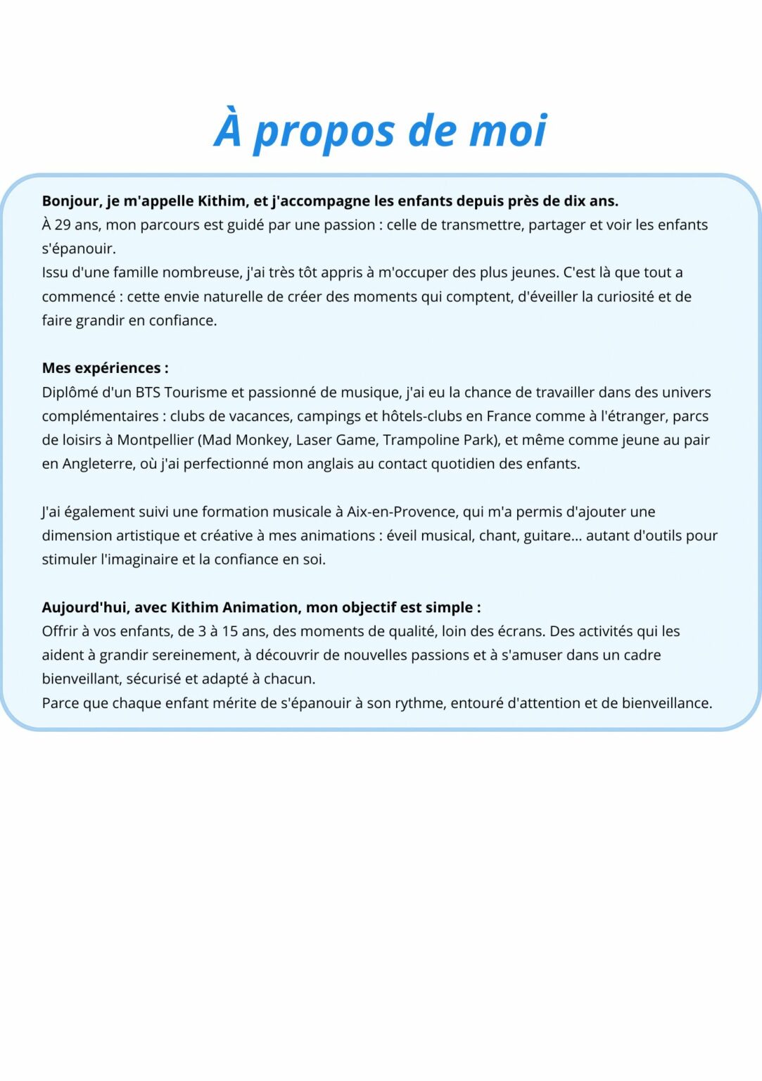 Très bon encadrement, super activité avec Kithim qui sait prendre le temps pour chaque enfant et s’adapter à chacun. Très pédagogue et bienveillant, en 3 jours c’est bon pour le vélo avec même le départ arrêté ! Le tout dans une super ambiance pour les enfants !.”